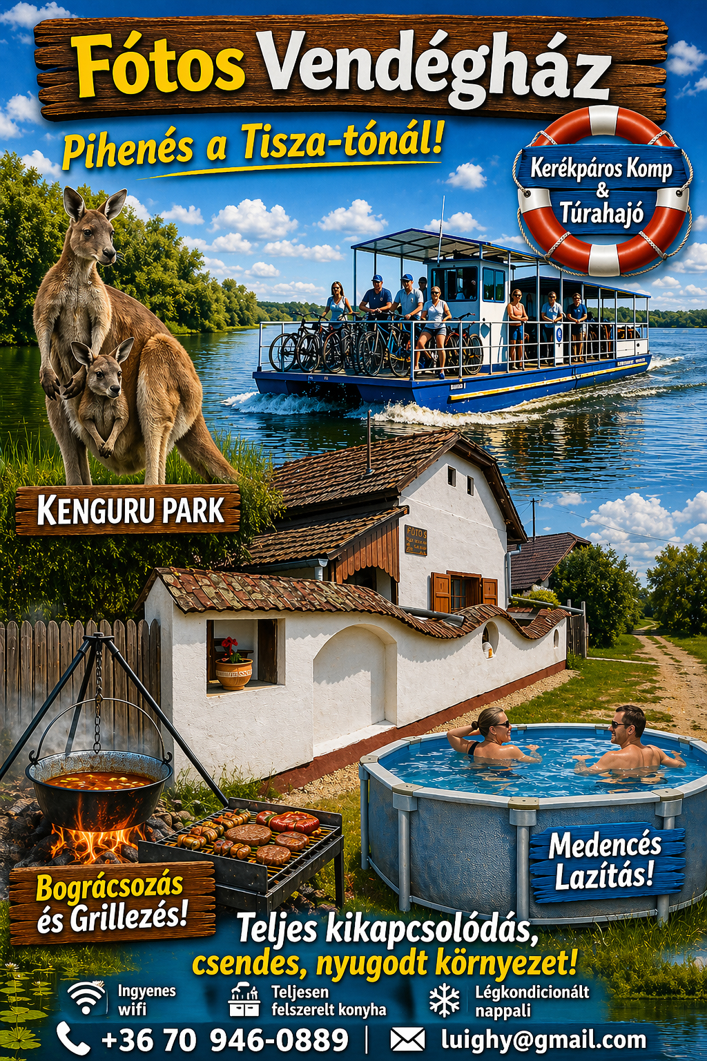 Jellemzők: bababarát, családbarát, felszerelt konyha, internet